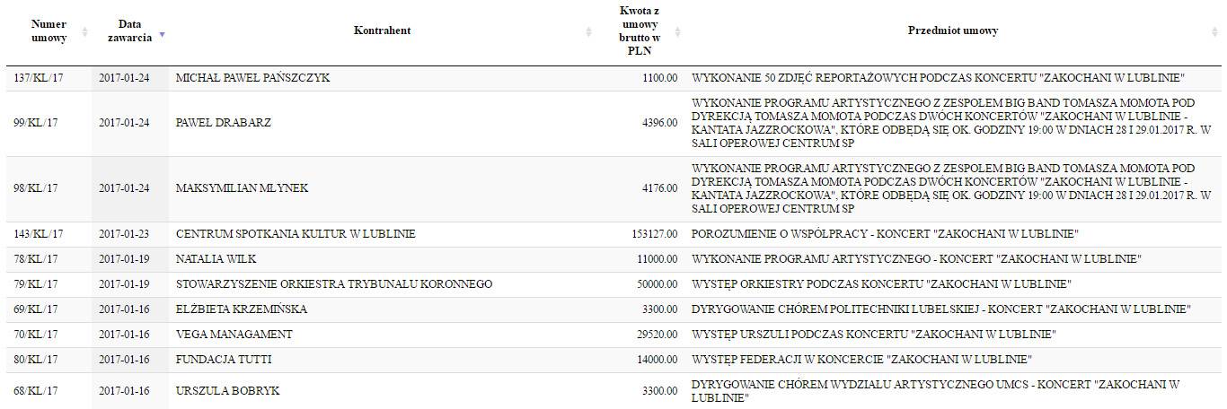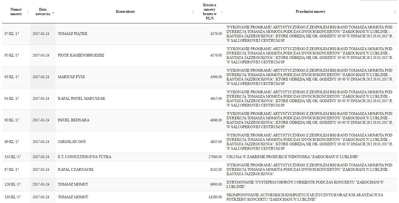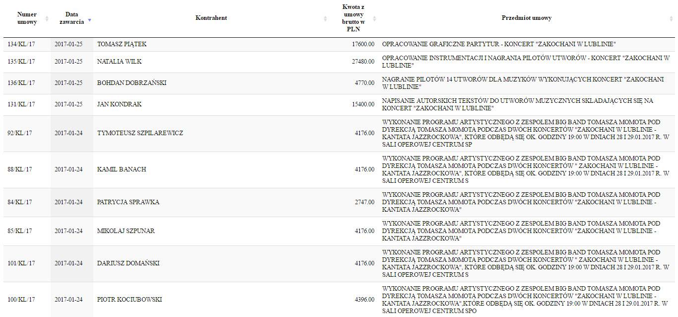 Miasto opublikowano wykaz umów za styczniowe widowisko.