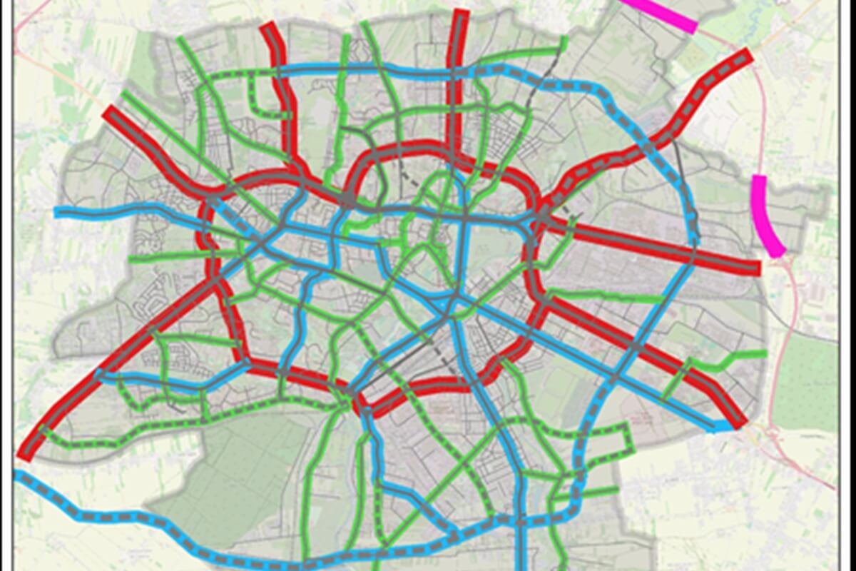 Wariant I testuje rozwiązania wynikające z projektu Planu Ogólnego. Zakłada budowę 17 nowych tras drogowych oraz szereg podwyżek i obniżeń klas ulic. Podniesienie klasy ulic w obrębie wewnętrznego ringu ma ograniczyć i wyprowadzić ruch samochodowy z centrum miasta.