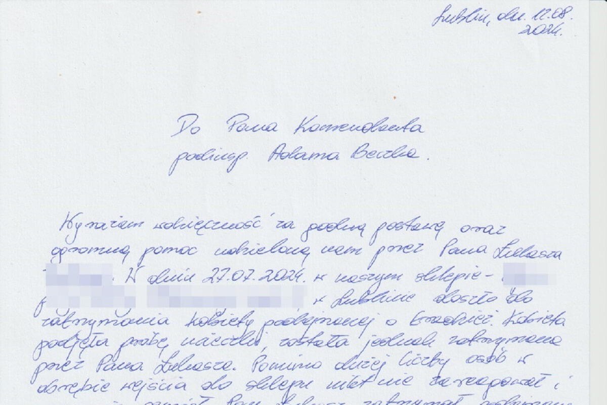 Do Komendanta Miejskiego Policji w Lublinie wpłynęły podziękowania od kierowniczki sklepu, w którym doszło do kradzieży. Kobieta, która dopuściła się kradzieży, próbowała uciec, ale dzięki szybkiej reakcji policjanta, została zatrzymana. W swoim liście kierowniczka podkreślała: „Pomagamy i chronimy (…) to hasło nie jest obce Panu Łukaszowi. Wykazał się oddaniem dla swojej służby oraz dużym spokojem…”.