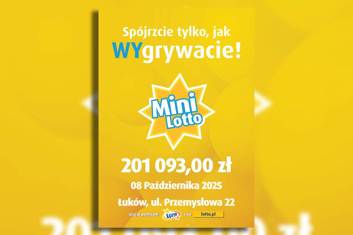 To już kolejna w ostatnich tygodniach wysoka wygrana w naszym regionie. Tym razem szczęście uśmiechnęło się do mieszkańca Łukowa lub okolic. Zwycięzca trafił „piątkę” w Mini Lotto, a jego konto zasili ponad 200 tysięcy złotych.