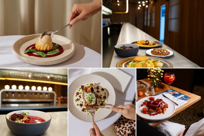 W kuchni restauracji Widok można zjeść oryginalne przystawki, doskonałą włoską pizzę, frytki i zdrowe sałatki. Restauracja serwuje też przysmaki kuchni orientalnej i śródziemnomorskiej takie jak mule, krewetki czy sushi, a także słodkie desery – lody i gofry w wielu odsłonach.